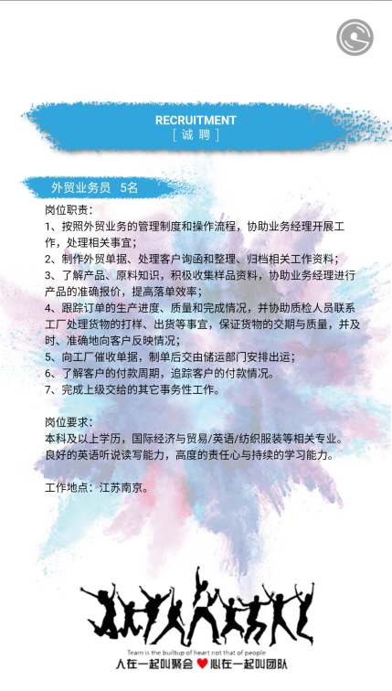 纺服学院【2020】45号 七色纺2020届校园招聘